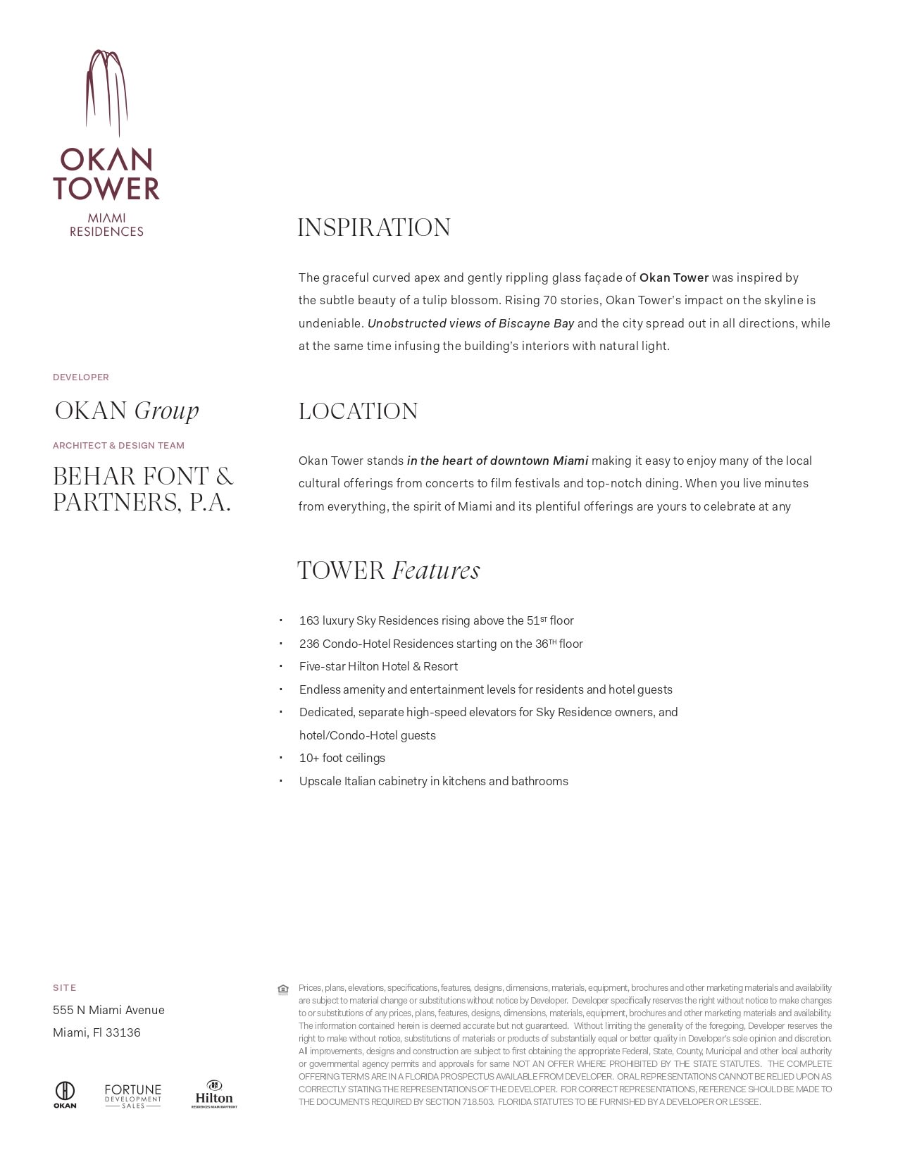 There is the stunning beauty of Biscayne Bay, the historic charm of the Flagler Redevelopment District, the fashionable energy of Brickell, the creativity of the Arts & Entertainment District, and progress in all directions. Right in the very center is Okan Tower – your gateway to all South Florida has to offer.