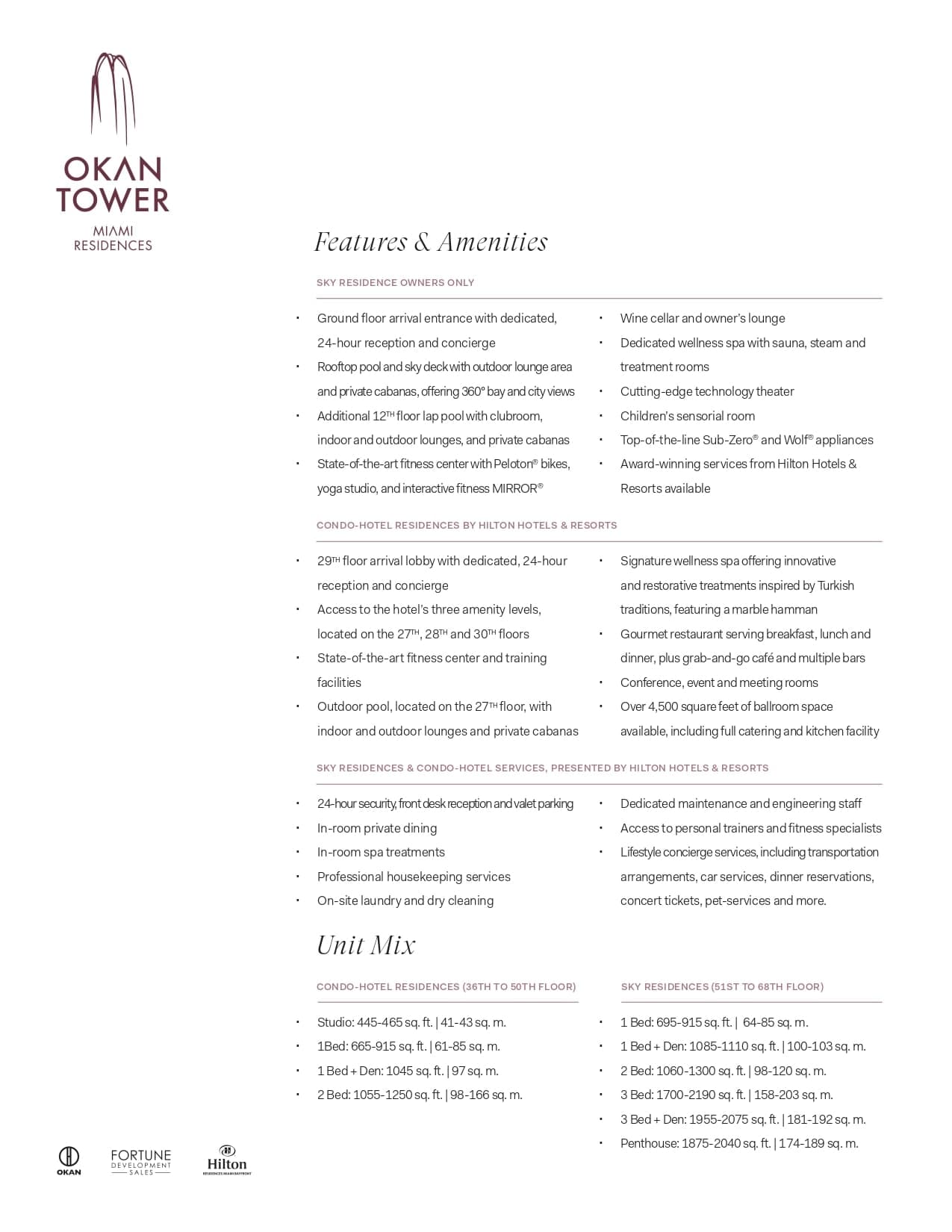 Living at Okan Tower means being at the forefront of an exciting urban residential experience. Walk to parks, shops, restaurants, museums, professional sports, concerts, the performing arts, festivals, and nightlife. Or, delight in the waters of Biscayne Bay or the Miami River, or venture to Miami Beach and the Atlantic Ocean for upscale coastal relaxation.